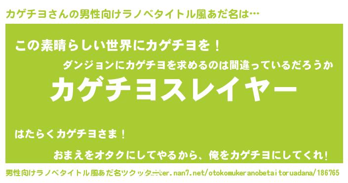 | ヘコむあだ名 | 『カゲお』『カゲチヨ(小並感)』 |