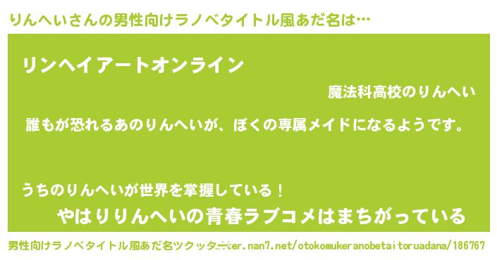 | 女子向けラノベタイトル風あだ名 | 『異世界でカフェりんへいを開店しました。』 |