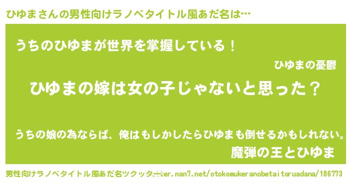 | ヒーロー風カッコイイあだ名 | 『幻影騎士ヒユ』『仮面ヒユダー』 |