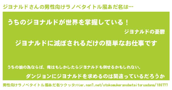 | 意味不明あだ名 | 『とにかく怪しいジヨナルド』 |