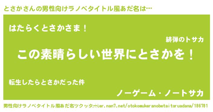 | 意味不明あだ名 | 『住所不定無職とさか(71歳)』 |