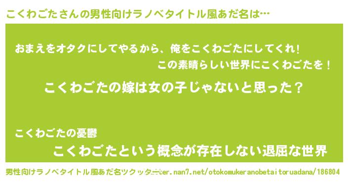 | 女子向けラノベタイトル風あだ名 | 『こくわごた様がみてる』 |