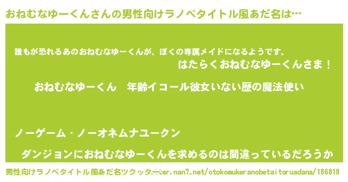 | 女子向けラノベタイトル風あだ名 | 『おねむなゆーくんの玉の輿計画!』 |