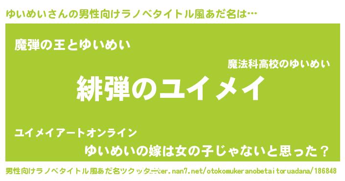 | ヘコむあだ名 | 『ゆいっちょ』『ゆいふぇ~』 |