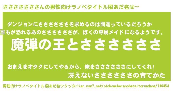 | 女子向けラノベタイトル風あだ名 | 『ささささささが死なない童話 林檎のささささささの診療簿』 |
