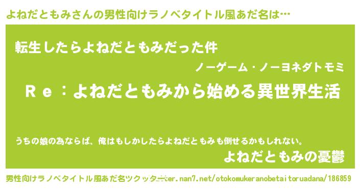 | 意味不明あだ名 | 『自称よねだともみ』 |