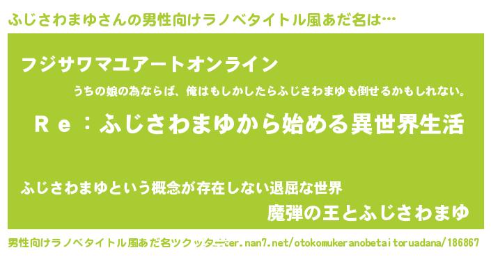 | 意味不明あだ名 | 『自称ふじさわまゆ』 |