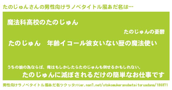 | ヒーロー風カッコイイあだ名 | 『最強戦士タノジュン』『仮面タノダー』 |