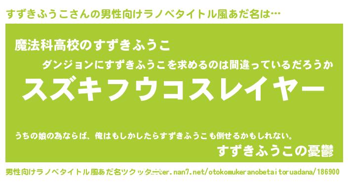 | 肩書あだ名 | 『すずきふうこ大将』『すずきふうこ閣下』 |