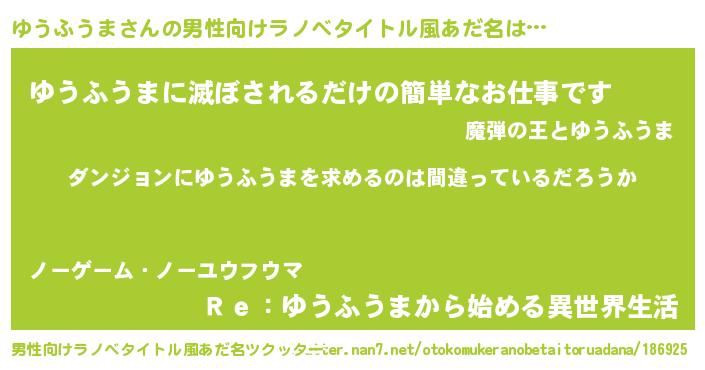 | 女子向けラノベタイトル風あだ名 | 『ゆうふうまは平凡を望む』 |