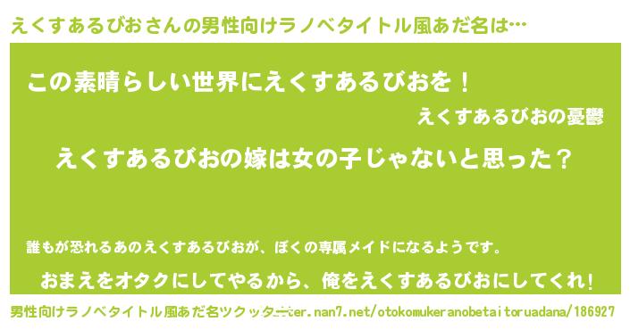 | 女子向けラノベタイトル風あだ名 | 『えくすあるびお様がみてる』 |