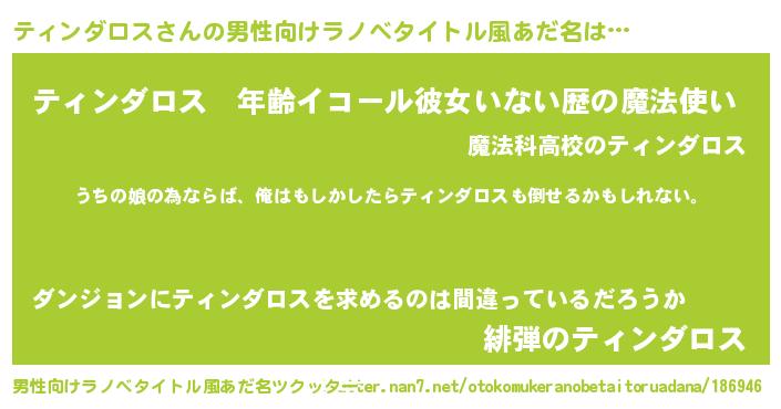 | 意味不明あだ名 | 『ティンダロスフォーエバー』 |