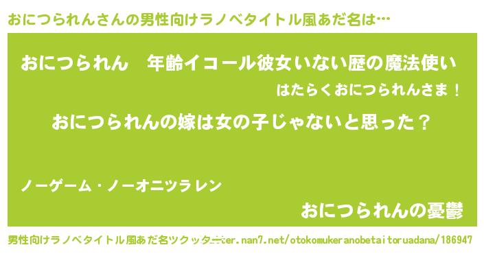 | 女子向けラノベタイトル風あだ名 | 『おにつられん様がみてる』 |