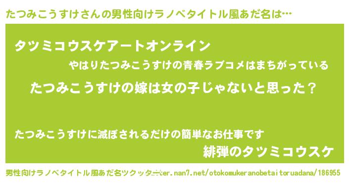 | 胡散臭い通販商品みたいなあだ名 | 『全米が絶賛したサプリメント…その名も「たつみこうすけ」』 |