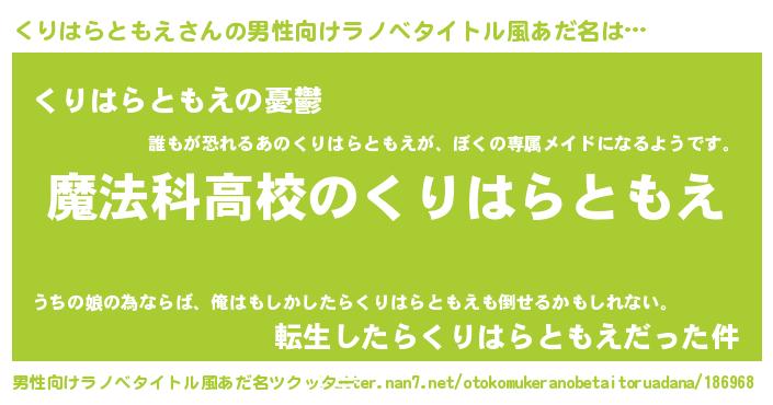 | 女子向けラノベタイトル風あだ名 | 『くりはらともえなんてお断りですっ。』 |