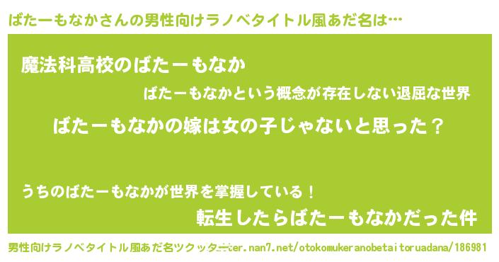 | 女子向けラノベタイトル風あだ名 | 『ばたーもなか様がみてる』 |