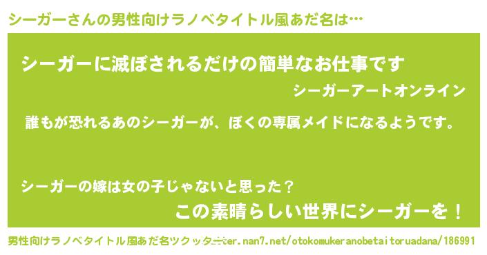 | ヘコむあだ名 | 『シーガー(笑)』『シーにゅー』 |