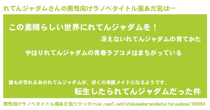 | 女子向けラノベタイトル風あだ名 | 『れてんジャダム伯爵の花嫁』 |