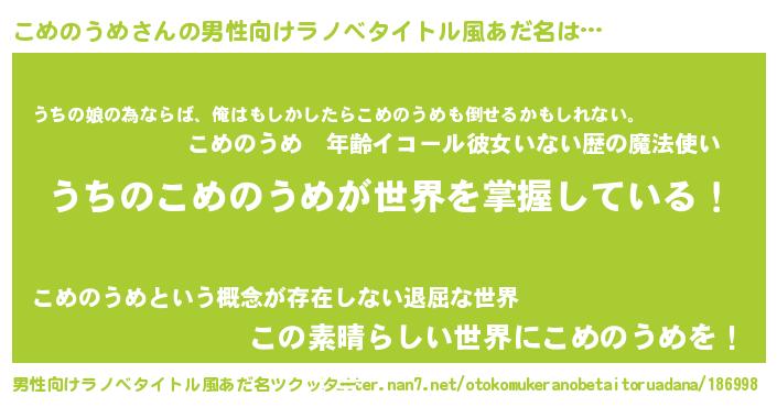 | 胡散臭い通販商品みたいなあだ名 | 『運命の人と巡り会える高級そうな絵画…その名も「こめのうめ」』 |