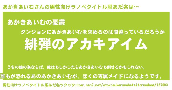 | 肩書あだ名 | 『あかきあいむ艦長』『あかきあいむ店長』 |