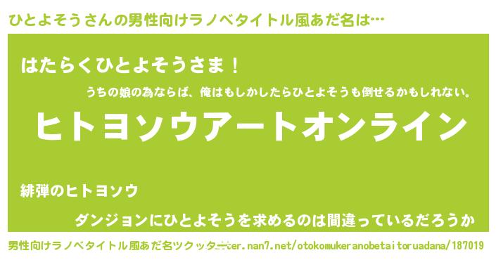 ひとよそうさんの男性向けラノベタイトル風あだ名をツクッター!
