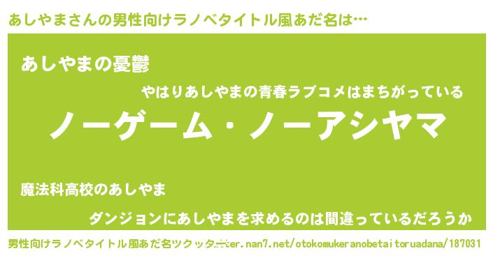 | 女子向けラノベタイトル風あだ名 | 『あしやま恋絵巻』 |
