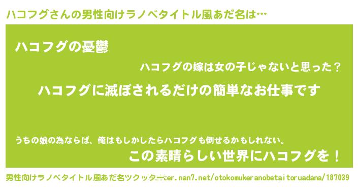 | ファンタジー風あだ名 | 『ハコフェル』『ヴァルハコーナ』 |