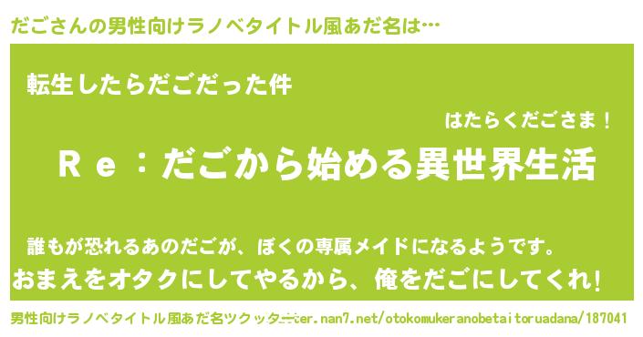 だごさんの男性向けラノベタイトル風あだ名をツクッター!