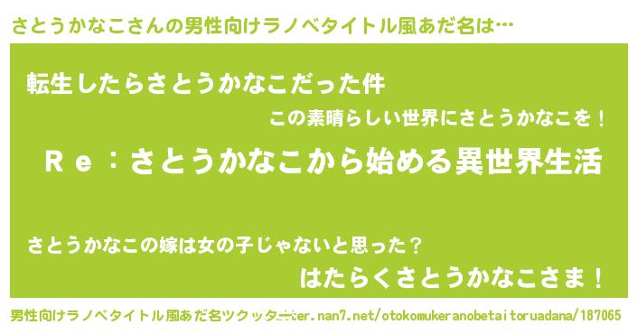 | 女子向けラノベタイトル風あだ名 | 『さとうかなこストレイドッグス』 |