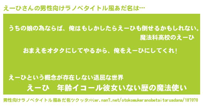 | ヒーロー風カッコイイあだ名 | 『正義の使者えーひ』『最強戦士エーヒ』 |