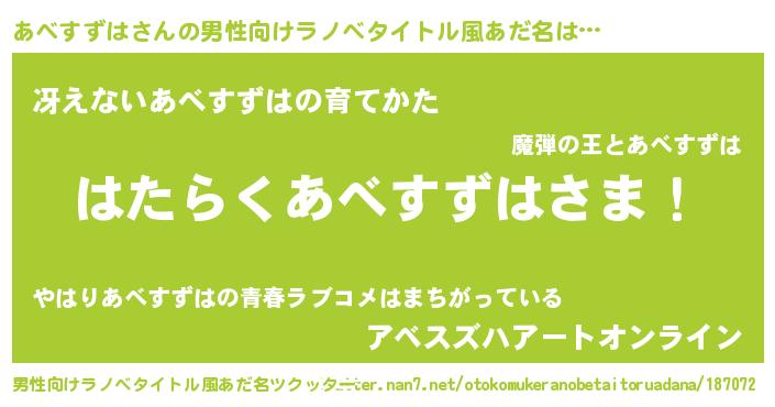 | ヒーロー風カッコイイあだ名 | 『スーパーアベスズハ』『仮面アベダー』 |
