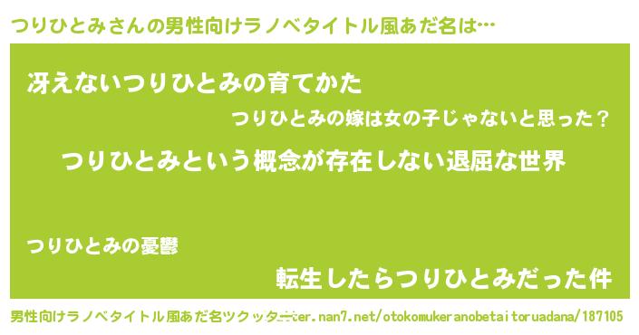 | 胡散臭い通販商品みたいなあだ名 | 『絶対に幸福をもたらす健康食品…その名も「つりひとみ」』 |