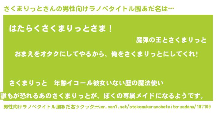| 女子向けラノベタイトル風あだ名 | 『さくまりっと夫妻のなれそめ』 |