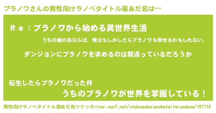 | ヒーロー風カッコイイあだ名 | 『魔戒騎士ブラ』『究極戦士ブラノワ』 |