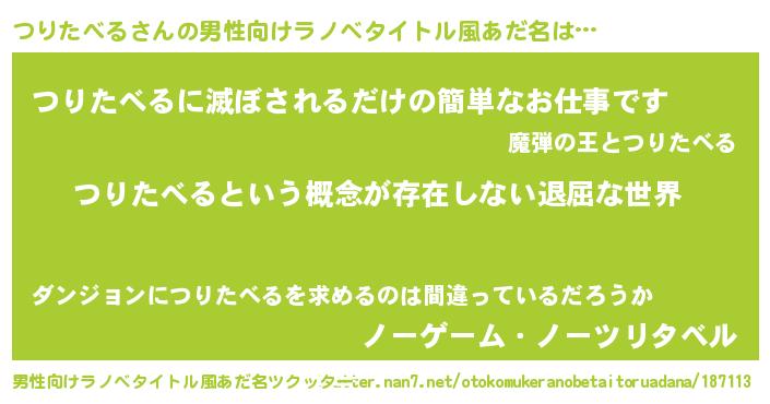| 意味不明あだ名 | 『永久保存つりたべる』 |
