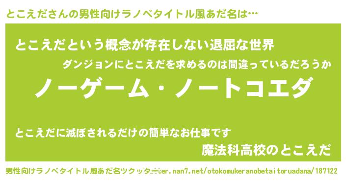 | ヘコむあだ名 | 『とこえだ(爆)』『とこ太郎』『豆乳』 |