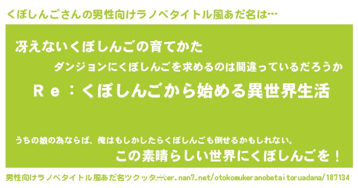 | 胡散臭い通販商品みたいなあだ名 | 『テレビで話題のアガリクス…その名も「くぼしんご」』 |