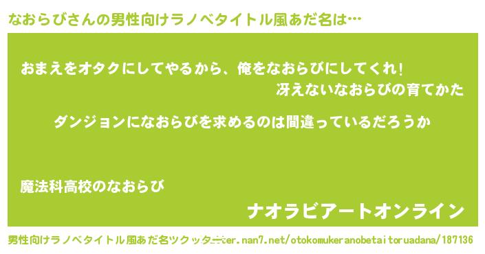 | 女子向けラノベタイトル風あだ名 | 『なおらびは平凡を望む』 |