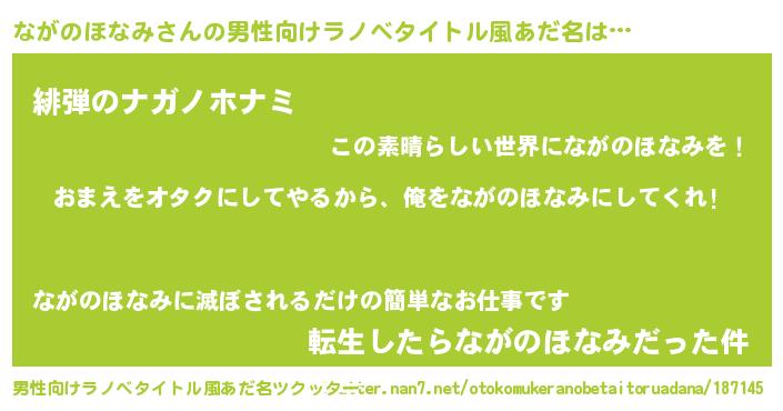 | 女子向けラノベタイトル風あだ名 | 『ながのほなみ恋絵巻』 |