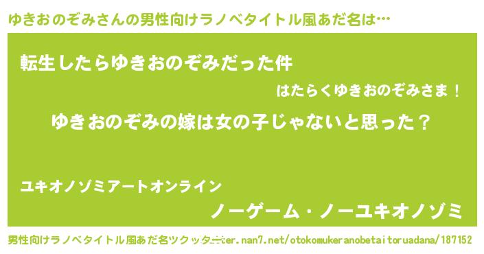 | 女子向けラノベタイトル風あだ名 | 『ゆきおのぞみ様がみてる』 |