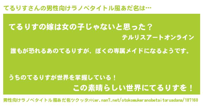 | 女子向けラノベタイトル風あだ名 | 『異世界でカフェてるりすを開店しました。』 |