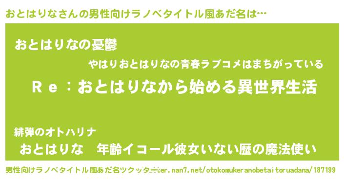 | 意味不明あだ名 | 『自称おとはりな』『ペロリンおとはりな』 |