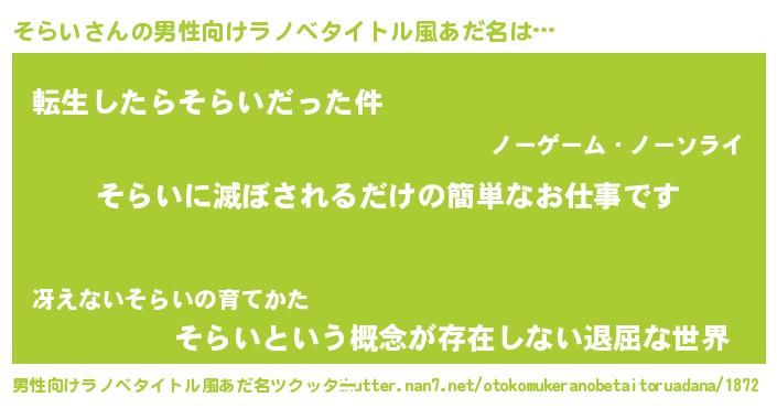 | 意味不明あだ名 | 『ニラ科そらい属』『永久保存そらい』 |