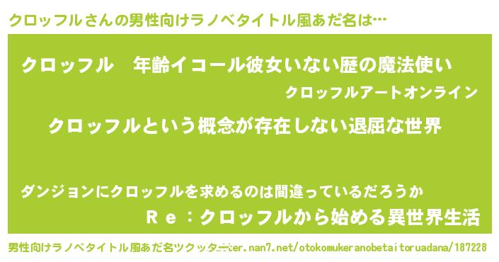 | ヒーロー風カッコイイあだ名 | 『ネオクロッフル』『最強戦士クロッフル』 |