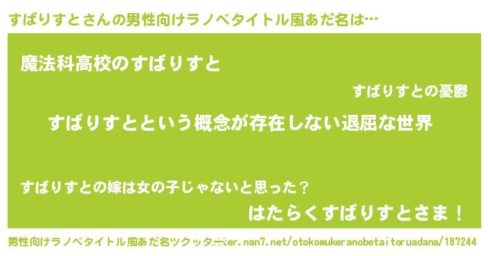 | 女子向けラノベタイトル風あだ名 | 『すばりすとの契約王妃』 |