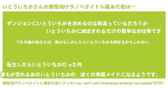 | 女子向けラノベタイトル風あだ名 | 『いとういちか伯爵の花嫁』 |