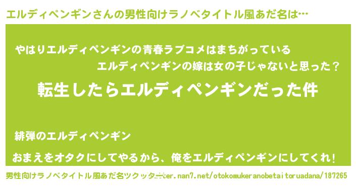 | 胡散臭い通販商品みたいなあだ名 | 『世界が平和になる高級そうな絵画…その名も「エルディペンギン」』 |