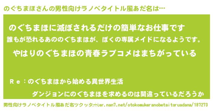 | 女子向けラノベタイトル風あだ名 | 『のぐちまほの雑貨屋さん』 |