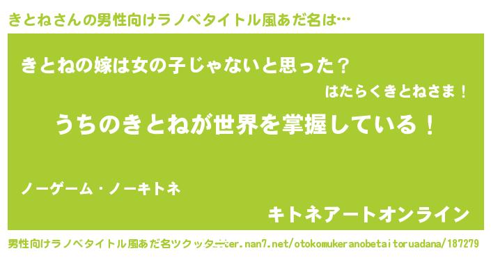 | 女子向けラノベタイトル風あだ名 | 『男装きとねの憂鬱な任務』 |