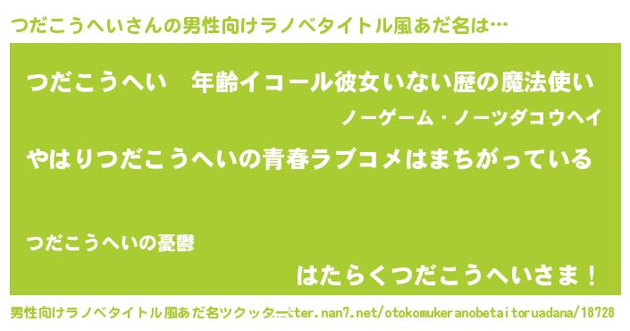 | 女子向けラノベタイトル風あだ名 | 『つだこうへいの雑貨屋さん』 |